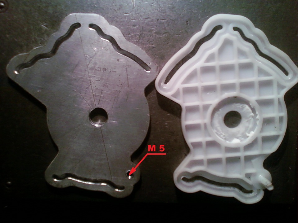 Чтобы прорисовать контур копира я использовал штатную карту отопителя, перевёрнутую «вверх ногами» (штырём вниз).Чтобы совместить копир карты с координатами «1» и «2» (мешает штырь штатной карты), необходимо обработать заготовку по контуру, в месте над осью штыря.
