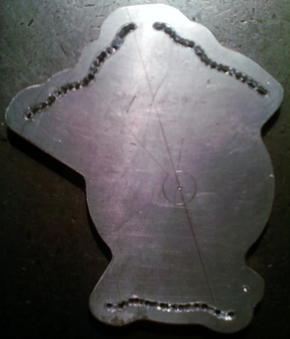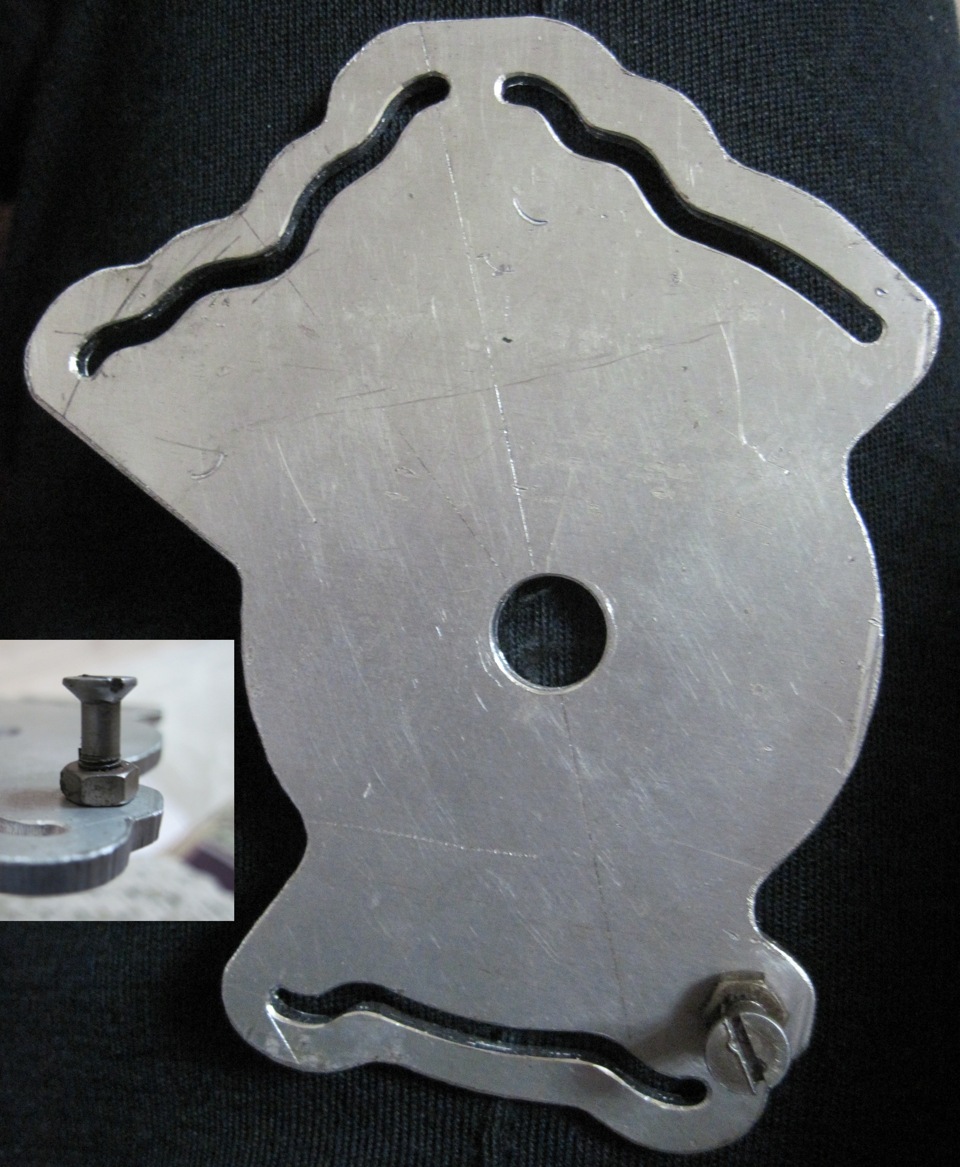 Далее чертилкой Ф2мм, на заготовке (дюраль, текстолит), аккуратно очерчиваем контуры карты, центральное отверстие и пазы копиров,