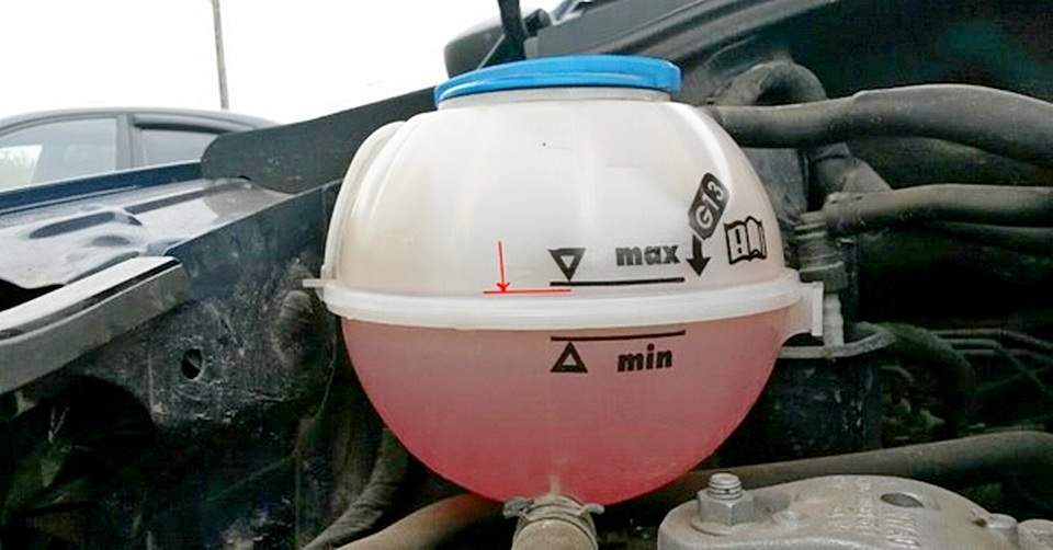 Если антифриз находится между двумя метками, значит все в порядке. При снижении уровня ниже позиции Min, нужно долить жидкость до нормы. При этом лучше проверить герметичность соединений шлангов, патрубков и остальных частей системы охлаждения.
