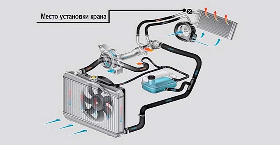 В районе центральной консоли автомобиля рядом с радиатором отопителя установлен кран. Устройство бывает механическим или электрическим. Оно необходимо для регулировки интенсивности потока антифриза. Летом не нужно отапливать салон по максимуму. Поэтому кран закрывают наполовину. На старых машинах это делают вручную, на новых за процедуру отвечает автоматическая система климат‐контроля.