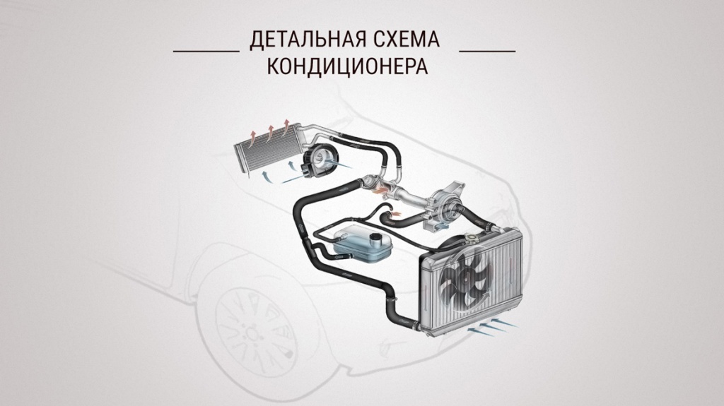 - Вентилятор «сдувает холод» с испарителя в салон. Завершая цикл, хладагент вновь попадает в компрессор.