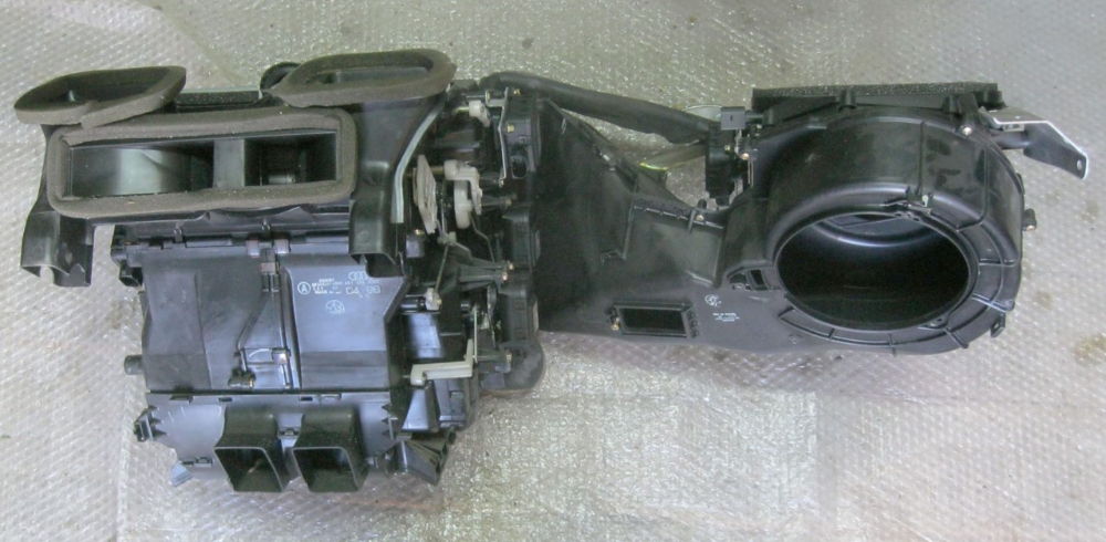Питание к электромотору подведено через комфортные штекеры. На корпусе моторчика размещается блок регулировок скоростей с сопротивлениями. Когда не работает печка Audi А6 С5, то нужно проверить его состояние и подключение.