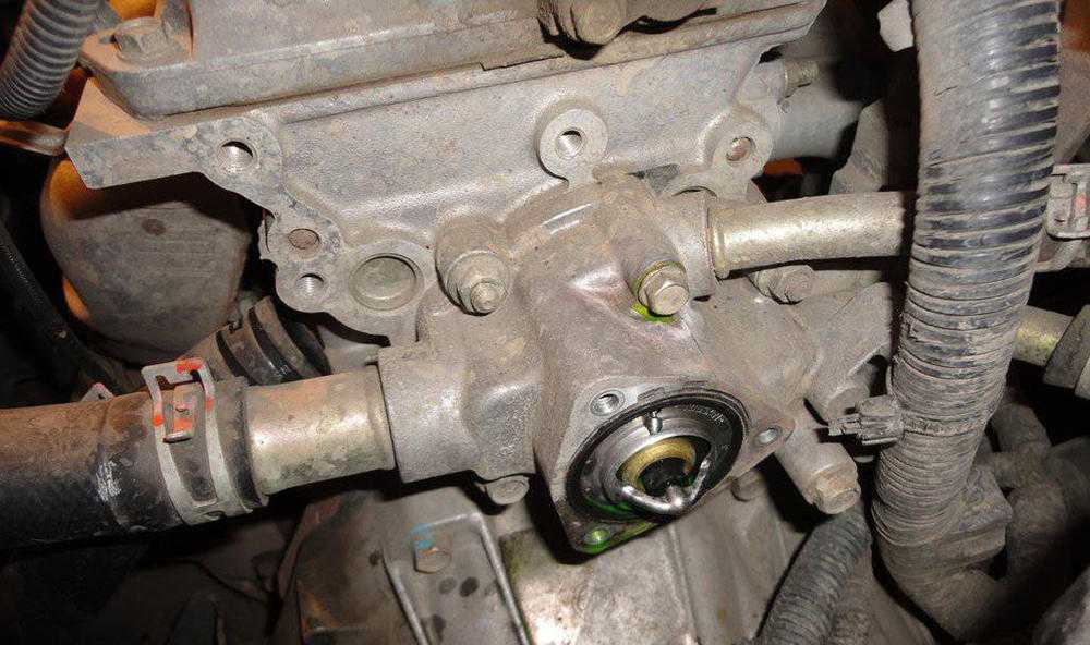 Как видим, ничего сложного, при неспешной работе можно управиться максимум за час. Кстати, после заливки антифриза не исключено образование воздушной пробки. Если она появилась в районе термостата, для избавления от завоздушенности достаточно открутить на несколько оборотов болт, находящийся над термостатом. В случае завоздушенности вы увидите пузырьки воздуха, которые будут стравливаться через неплотное соединение. Не забываем закрутить болт после окончания процедуры.