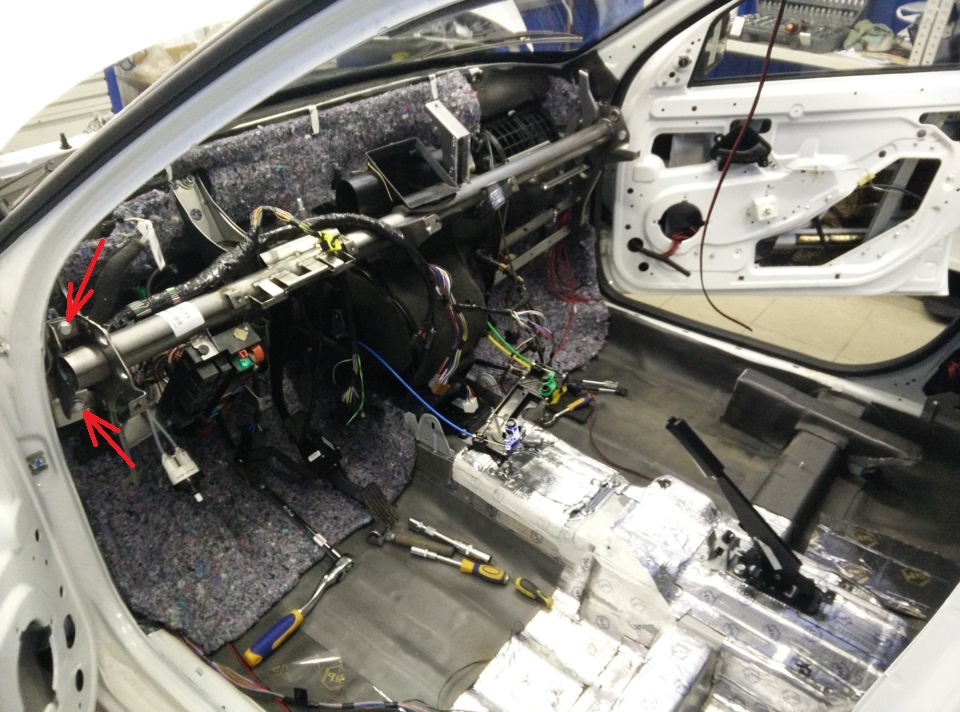 - Снимаем пластиковую облицовку туннеля, каркас рулевой колонки.