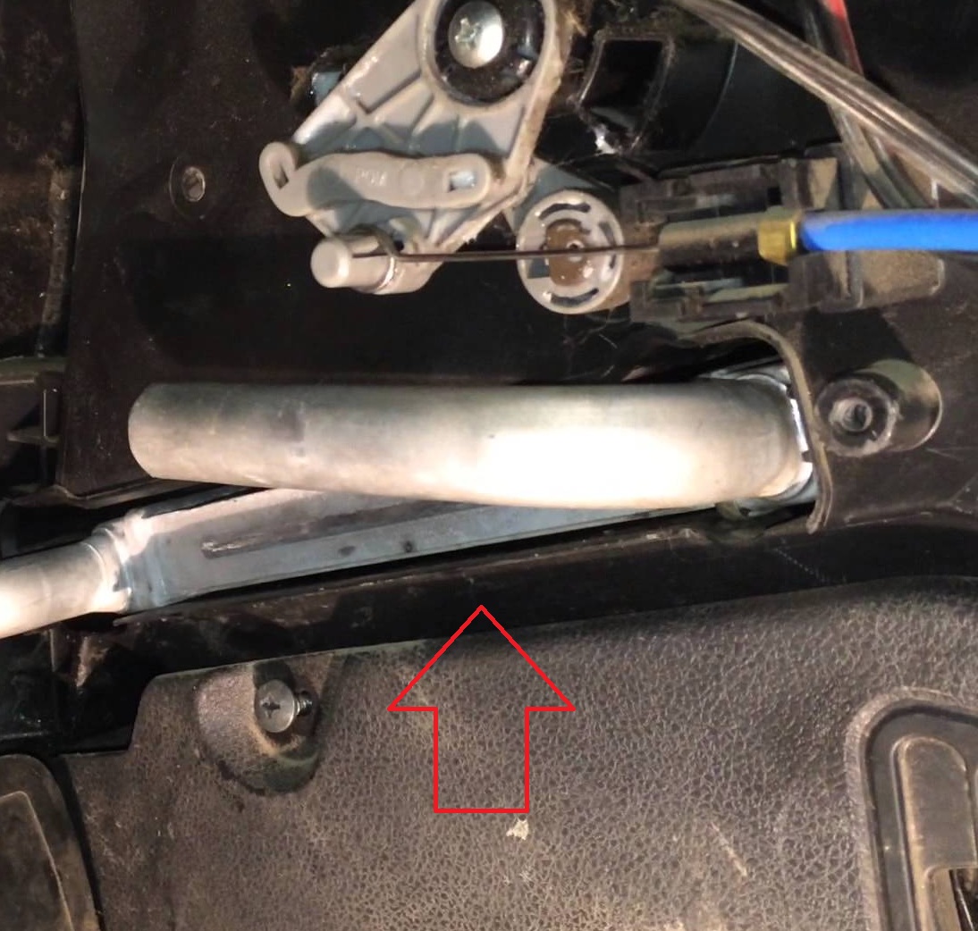 - Выкручиваются два самореза, и снимается кожух ручного тормоза.