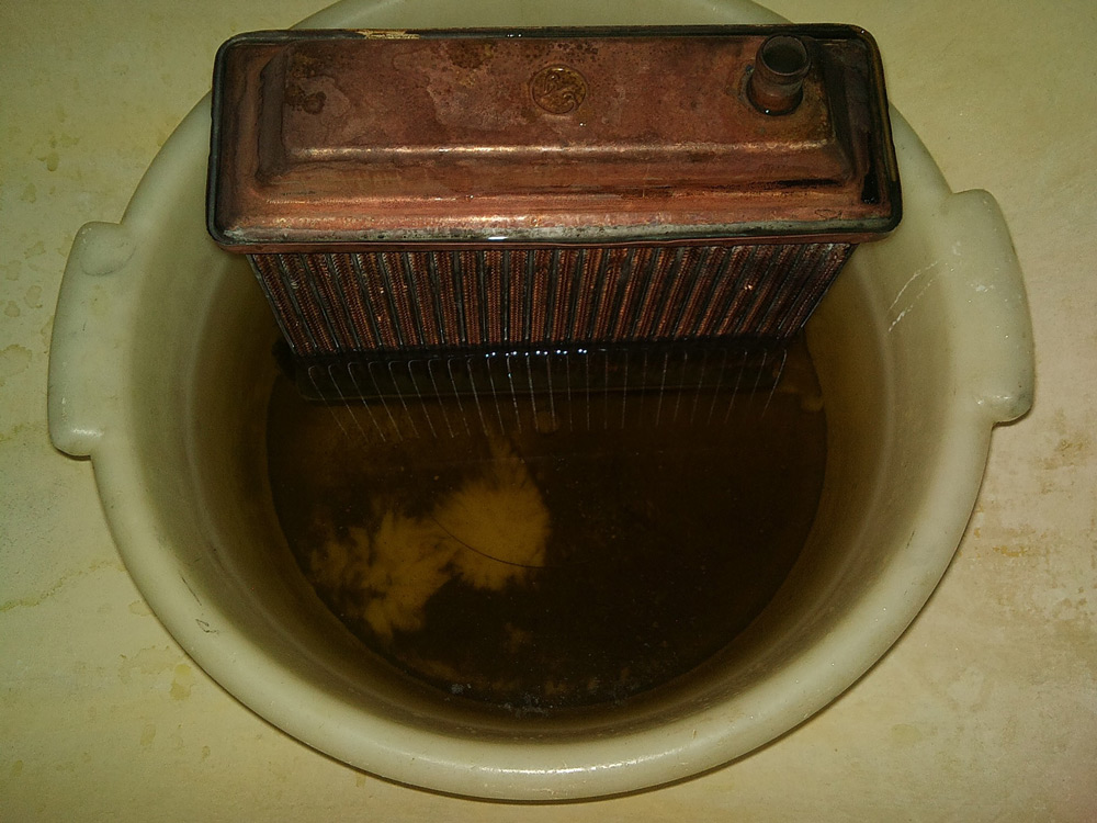 Если вы осмотрели снятый радиатор и убедились в его целостности, значит, проблема заключается только в его чрезмерном загрязнении, соответственно, это устройство нуждается в тщательной очистке. Конечно, если вы заранее убеждены, что радиатор в порядке, то промыть его, можно даже не прибегая к демонтажу.