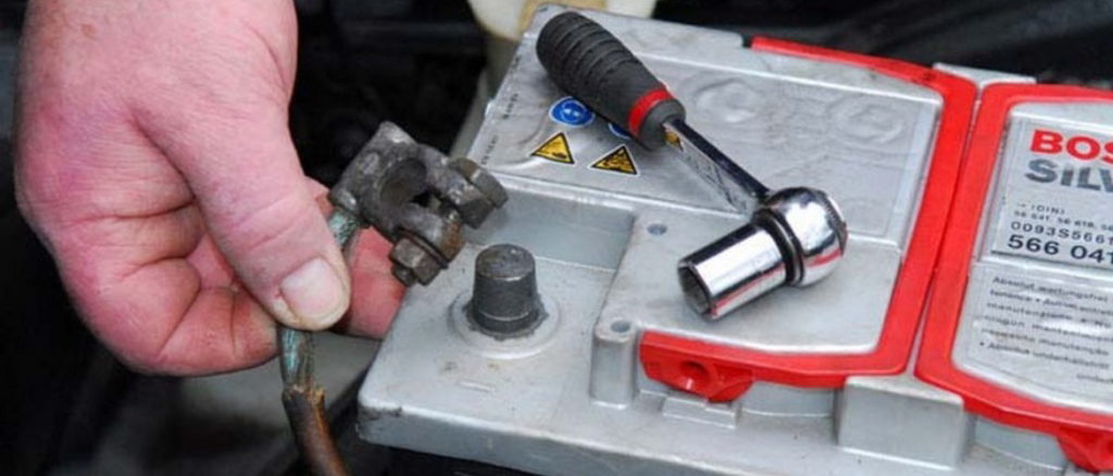 Первое что необходимо сделать, это отключить минусовую клейму с АКБ.