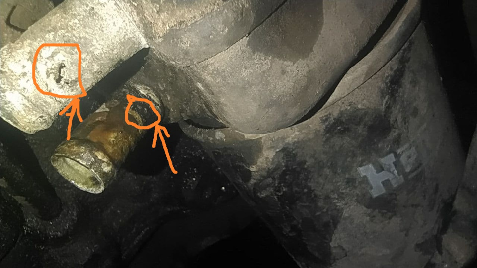 я не был удивлен, поскольку изначально осознавал такие последствия( всё таки лимонная кислота очень агрессивная по отношению к алюминию, но лично моё мнение:пусть лучше слабые места проявятся во время промывки, чем в дороге), всё же я взял этот факт на особый контроль и скорым временем закажу новый теплообменник.После 3-го раза даём двигателю немного остыть, и затем сливаем раствор лимонной кислоты из системы охлаждения.Для этого отсоединяем нижний патрубок основного радиатора от корпуса термостата( тот который над ним не трогаем, поскольку сам термостат отсутствует, вся жидкость выйдет через его КОРПУС), после того как вся жидкость сольется ставим патрубок на место.