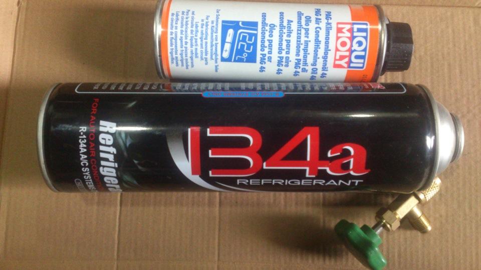 Более старые установки работали на фреоне R12, однако в девяностые годы произошел запрет этой смеси из-за ее негативного влияния на окружающую среду, а после запрета в кондиционерах стала применяться смесь R134a. Для заправки автокондиционера требуется порядка 700 -1000 г смеси.