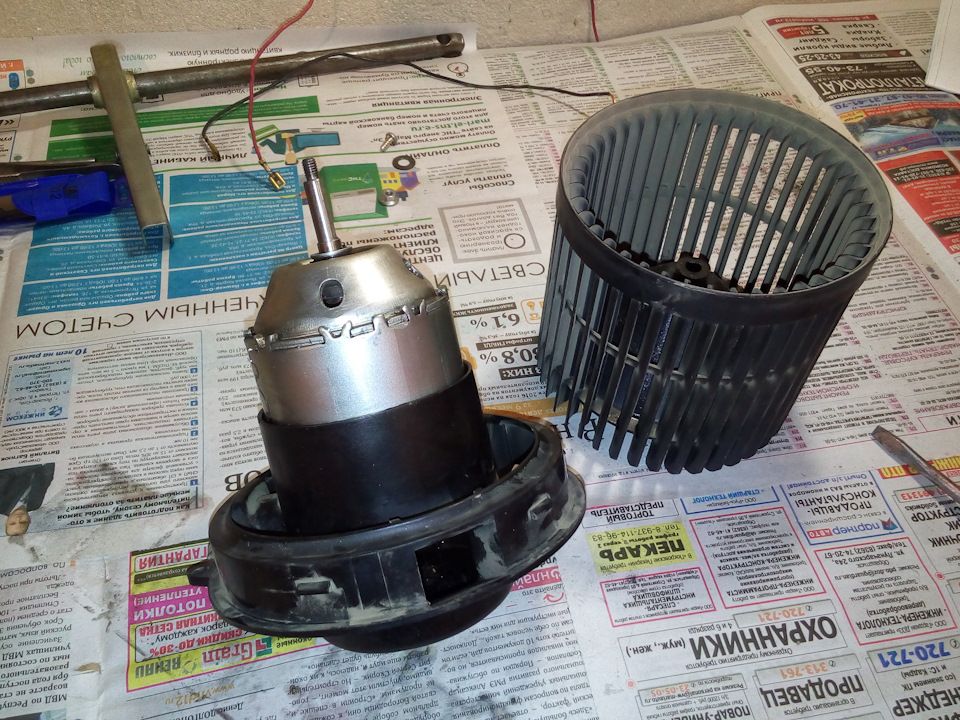 Замена вентилятора отопителя производится после того, как электродвигатель отключен, извлечен и очищен.
