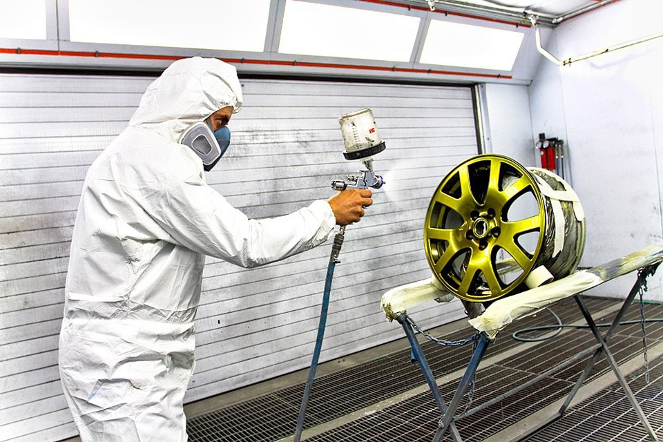 3. Далее переходят к нанесению на поверхность специального грунтовочного покрытия, обеспечивающего улучшение антикоррозийных свойств и адгезии с напыляемым красителем. Для защиты литых дисков, как правило, применяются эпоксидные (эпоксидно-цинковые) грунтовочные составы.