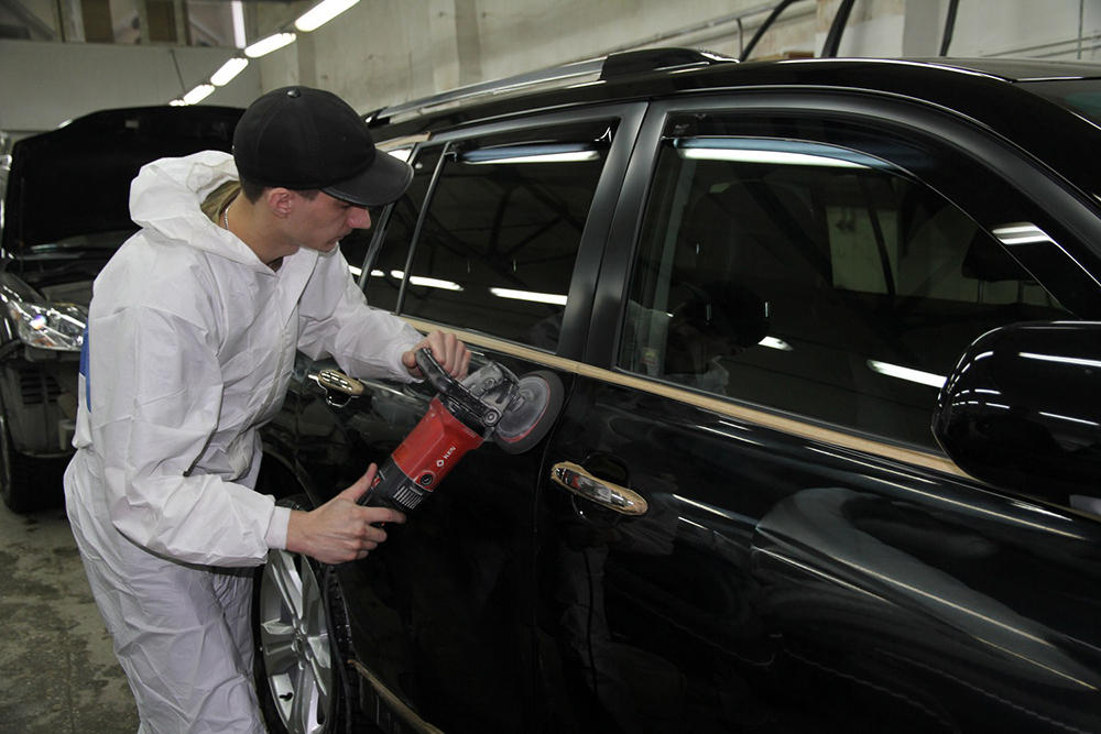 Особое внимание стоит уделить участкам с дефектами – царапинами, обработанными сколами, сильной матовостью, помутнениями. ЛКП на данном этапе выравнивается и становится гладким