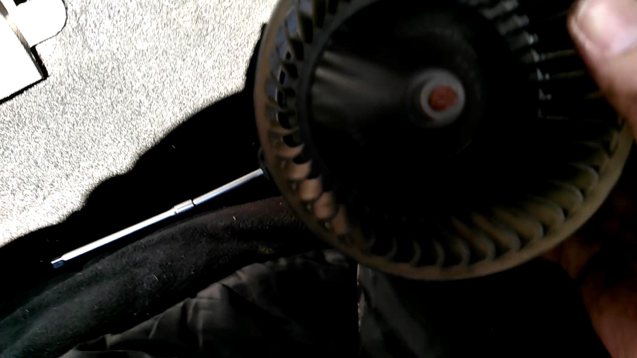 - Для того чтоб вынуть вентилятор, необходимо нажать на фиксатор и повернуть его против часовой стрелки. Извлечь деталь из штатного места довольно сложно, так как мешает шток тормозов. Можно аккуратно достать его, между трубками антифриза. Действовать нужно предельно внимательно, чтоб не повредить крыльчатку отопителя. Осмотрите деталь на предмет засора и механических повреждений, из-за которых он может не включаться.