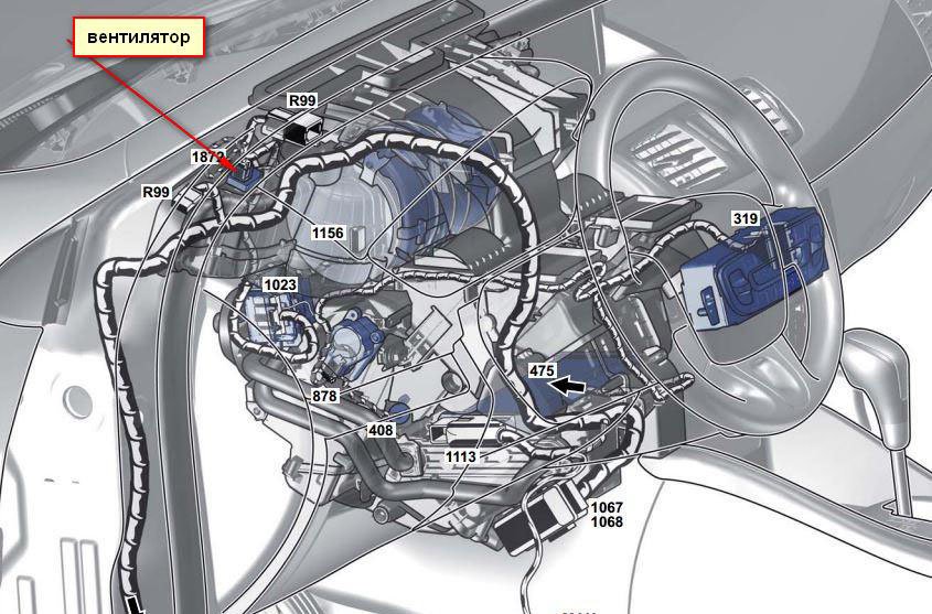 Где находится вентилятор печки у автомобиля «Рено Меган»