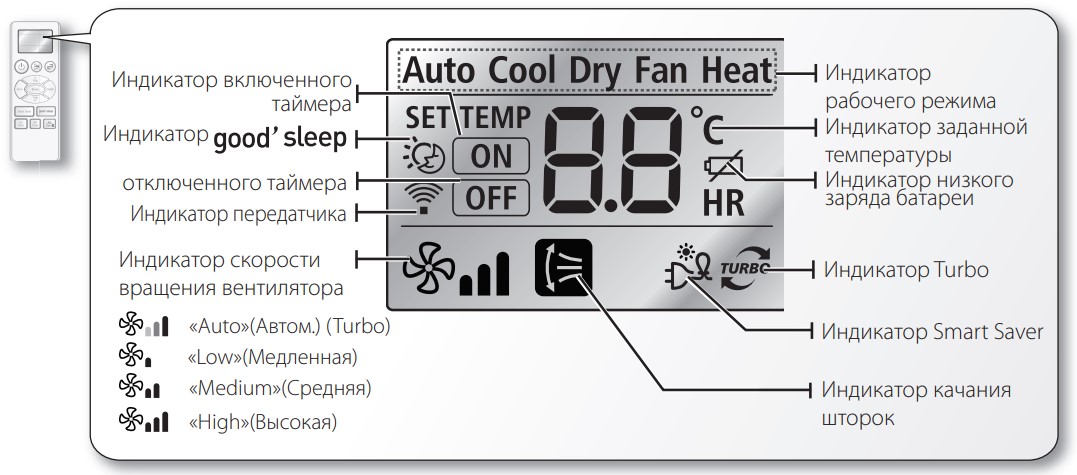 Рис. 2. Пример типового дисплея на пульте управления кондиционером
