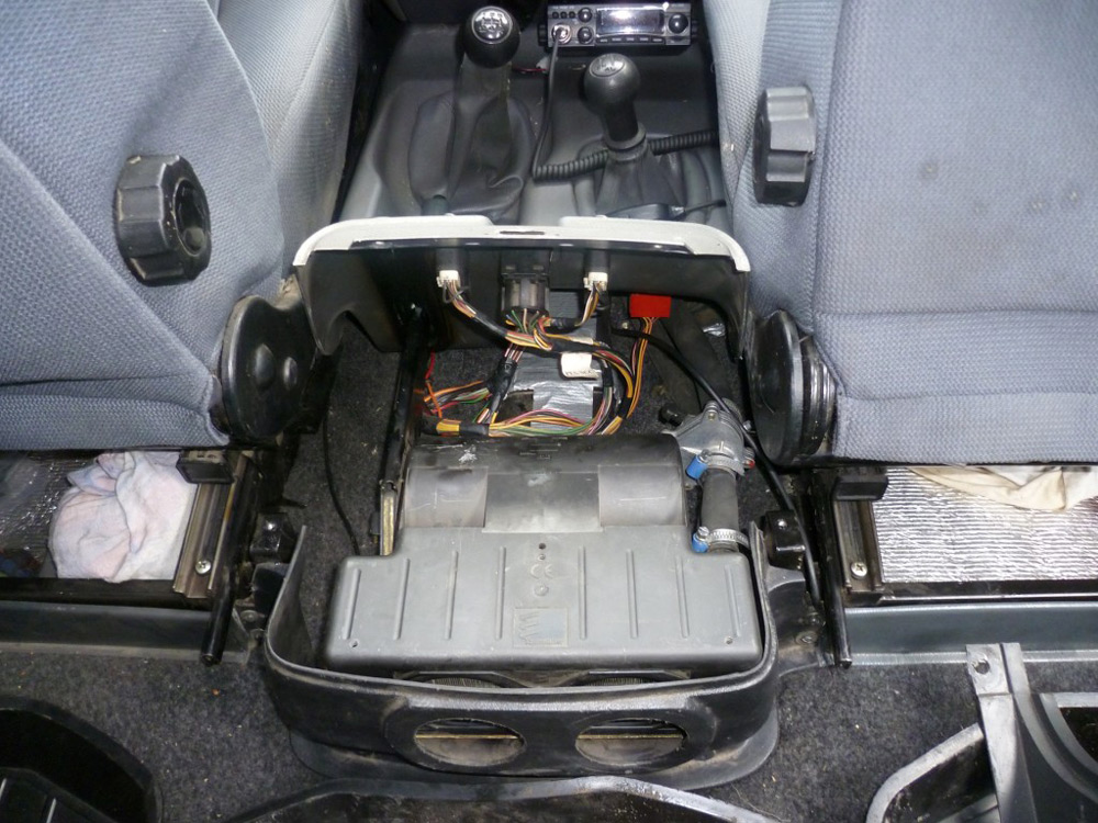 - Выбрать место и закрепить отопитель (для удобства работы можно демонтировать передние кресла).
