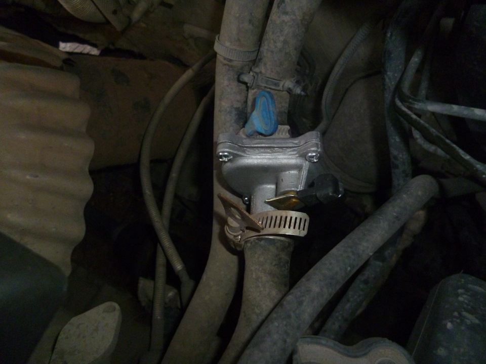 А какой у тебя радиатор на печке на четыре патрубка или на два (на четыре это когда со стороны бардачка ещё два патрука на которые ставится электро кран) может и он у тебя стоит если да то советую выкинуть …а в место него я просто вставил медную трубочку …а под капотом полу поворотный водопроводной кран как у тебя москвичевский
