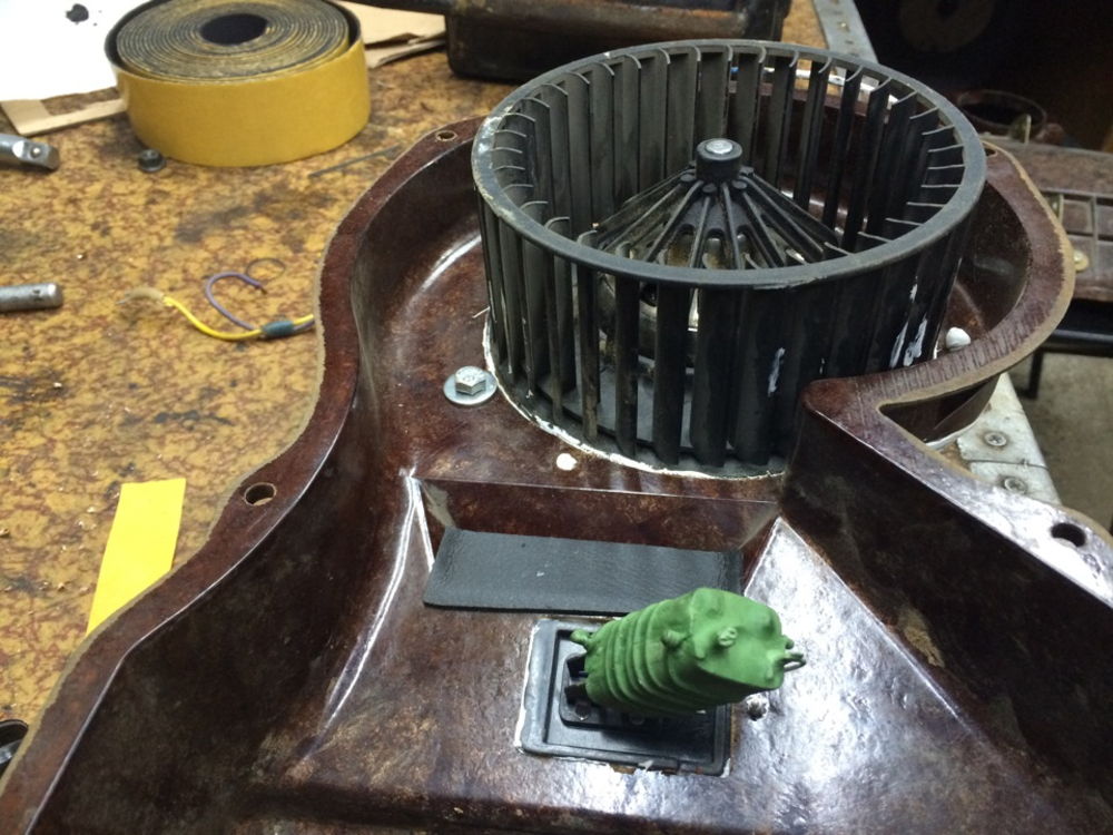 - Выкрутив эти болты, можно вынимать из корпуса печки Волги 3110 наш изношенный вентилятор отопителя.