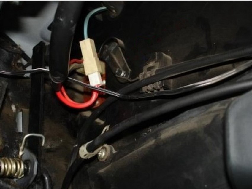 - найти тросик довольно просто, он расположен на корпусе отопителя, возле педали газа.