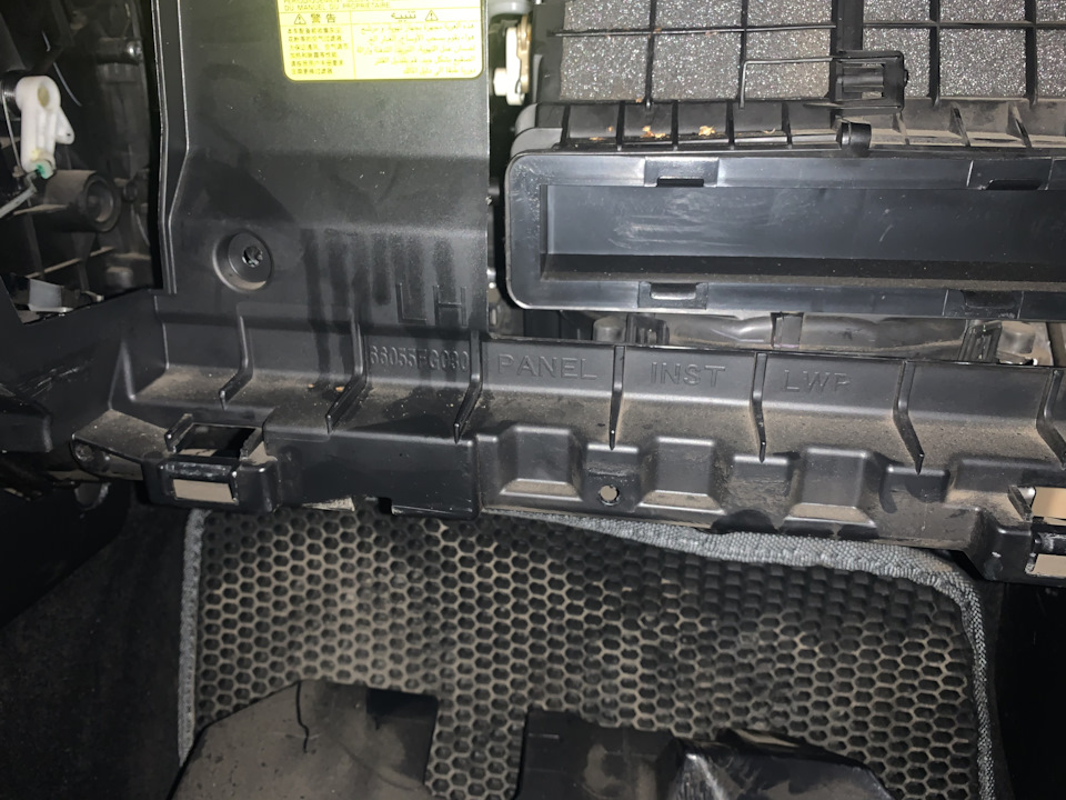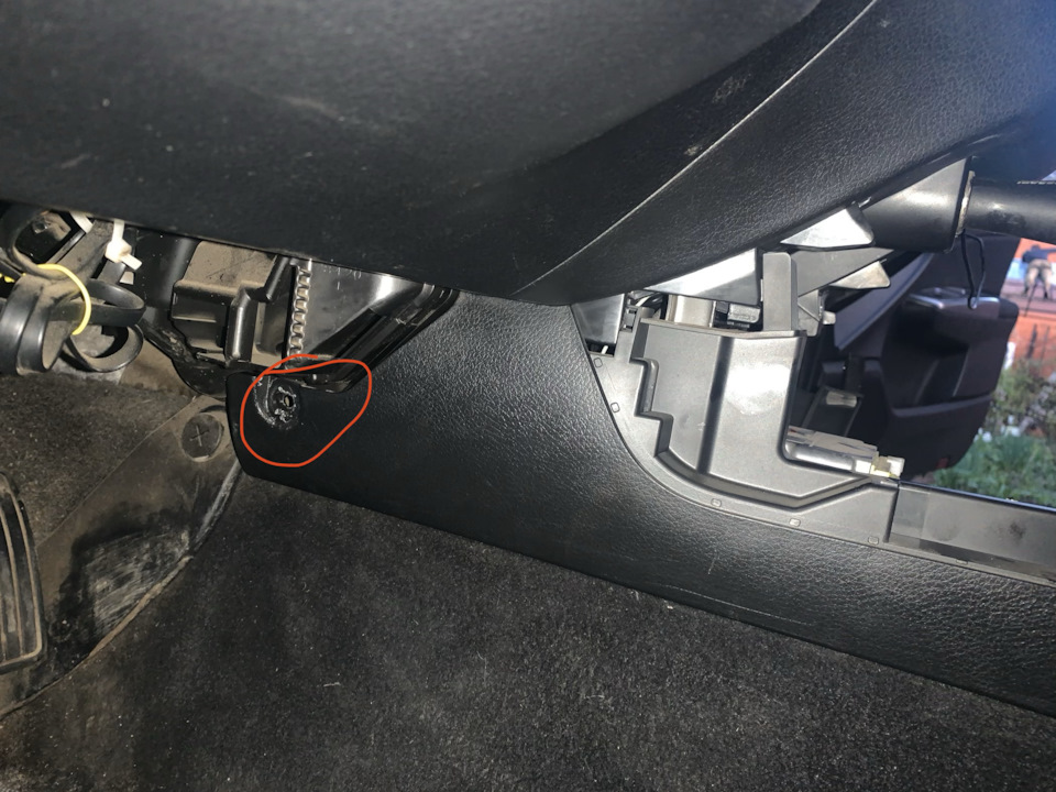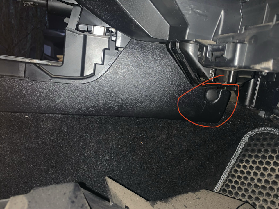 И снова идём в ноги пассажира и отстёгиваем все клипсы держащие пластик бордачка