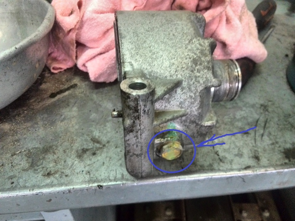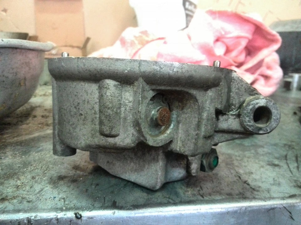 Кстати, после разбора обнаружил в передней крышке сливную пробку для масла (стрелка).