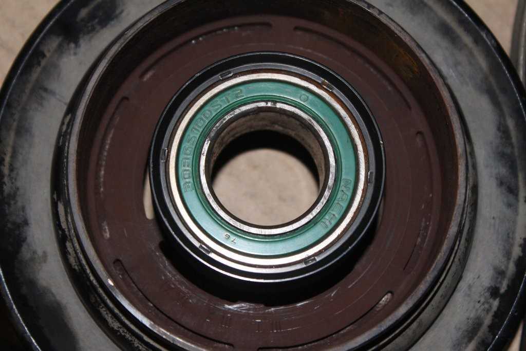 - Замена неисправного подшипника шкива своими руками производится также на снятом с машины компрессоре. Соответственно сняв приспособлением с вала саму муфту, выпрессовываем подшипник, заменяем его новым и производим сборку в обратном порядке.