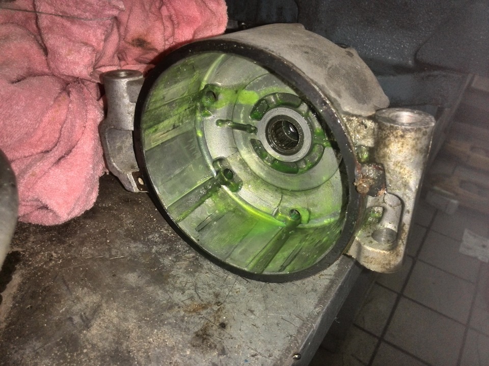 И аккуратно снимаем заднюю крышку с блоком клапанов в ней. За ранее подставить ёмкость для сбора масла. Польётся из корпуса.