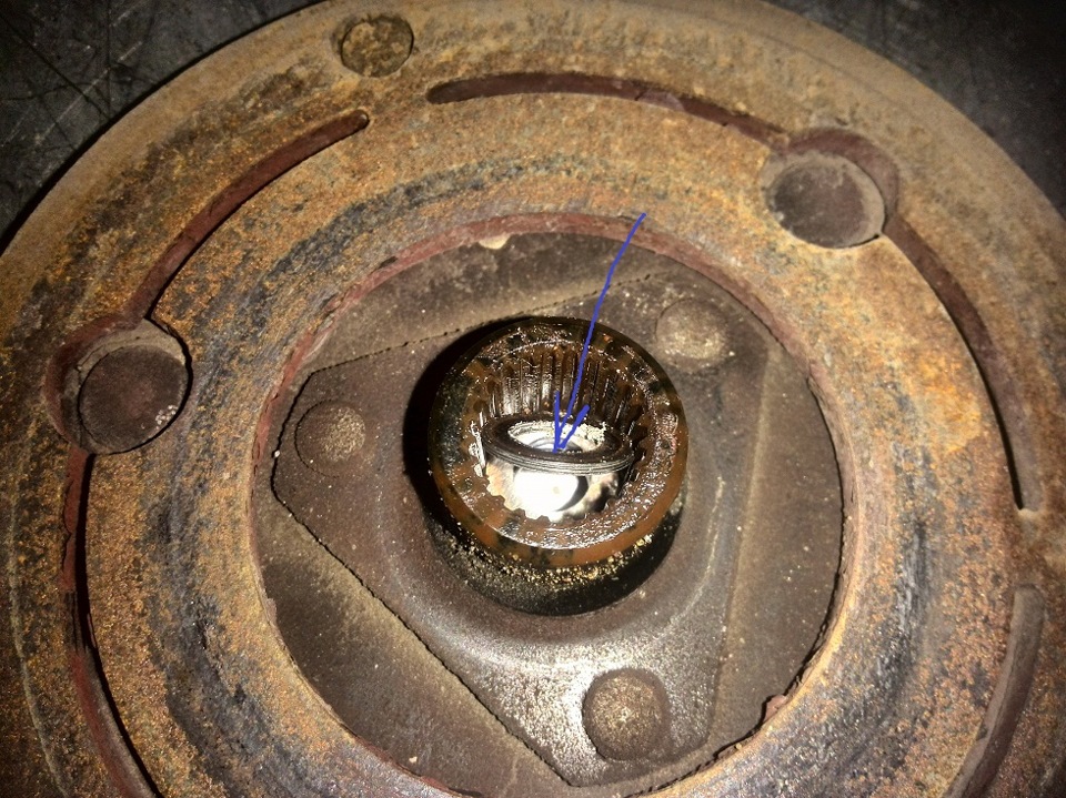 Аккуратно, чтобы не потерять регулировочные шайбы внутри (стрелка).