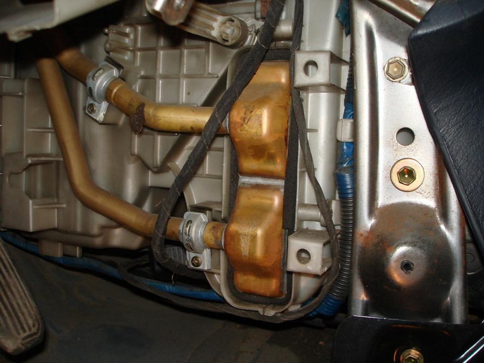 Китайские радиаторы обычно короче в длину, поэтому вставляйте их до УПОРА, а образовавшуюся слева щель конопатьте поролоном, чтобы радиатор печки тойота королла 120 было лишнего подсоса воздуха внутрь корпуса печки, иначе одна сторона будет дуть холоднее! Вставляем трубки не забываем про резиночкинемного подстукиваем внутрь, чтобы плотнее сели и завальцовываем отвёрткой.