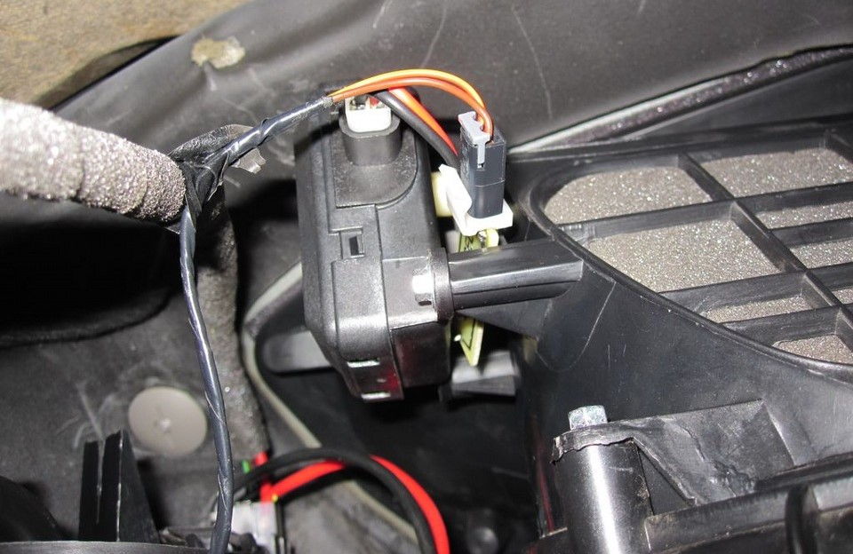 - отключите разъём, питающий электропривод заслонки и электровентилятор системы обдува салона;