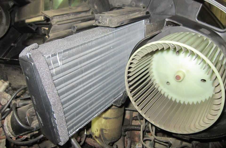 Слева открывается следующая картина. Данные заслонки отвечают за регулировку температуры потока. Заслонку слева не видно, но она в 1,5 раза меньше правой. Если поролон на большой еще цеплялся за жизнь, то на малой он рассыпался полностью.