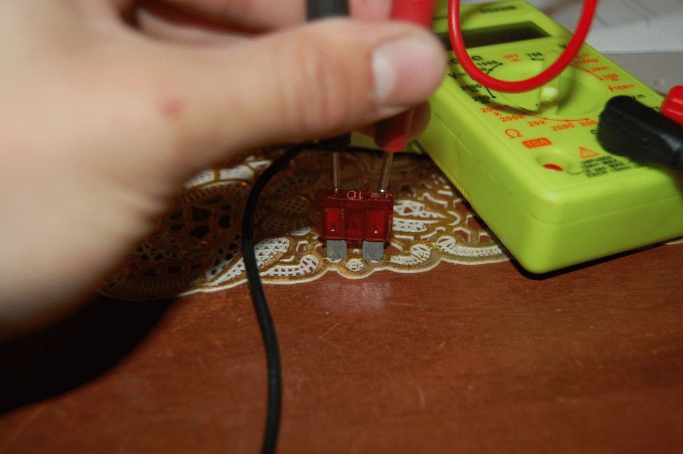 Для проверки измерительный прибор следует включить последовательно с потребителями. Если прибор покажет силу тока в цепи, можно считать предохранитель исправным, если он отсутствует, следует определить причину такого явления.