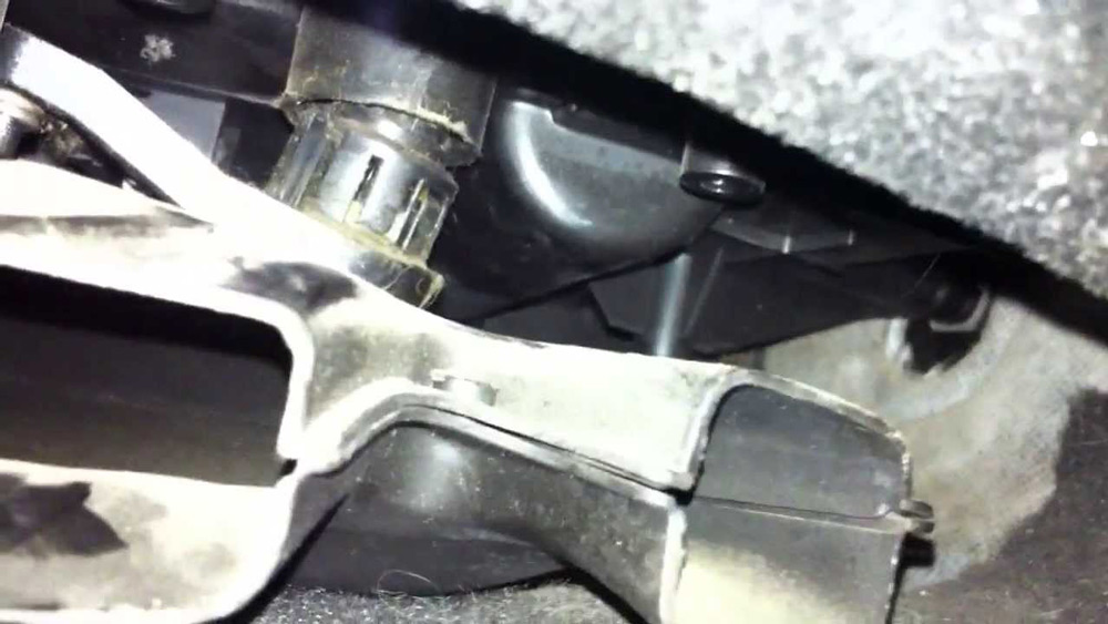 Шаг 2. При помощи 12-гранной битой требуется открутить болт крепления кронштейна-переходника патрубков радиатора. Это проще делать снизу машины. Не нужно снимать шланги с переходника.
