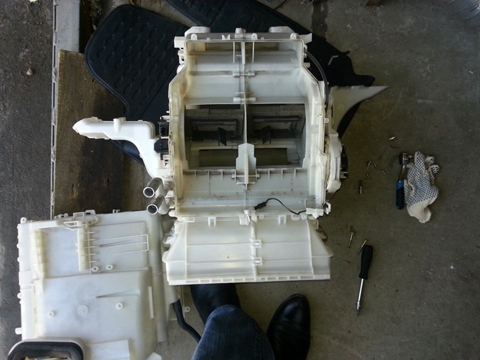 Состояние таких узлов, как радиатор и/или вентилятор отопителя, определяется после их демонтажа. На этом же этапе можно сделать вывод о целесообразности выполнения частичного ремонта, восстанавливающего функциональность устройства, или же о необходимости замены узла на новый ввиду невозможности выполнения его реставрации по тем или иным причинам (сложность, отсутствие необходимых инструментов, невозможность приобрести подходящие запчасти/комплектующие).