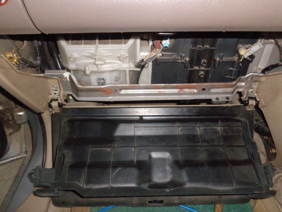 - Сначала снимите бардачок, отсоединив все крепления и фиксаторы.