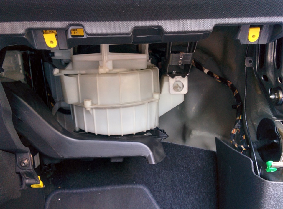 Отодвигаем сиденье переднего пассажира до упора назад, для более удобной работы и открываем бардачок для выполнения дальнейших действий (Рис.2).