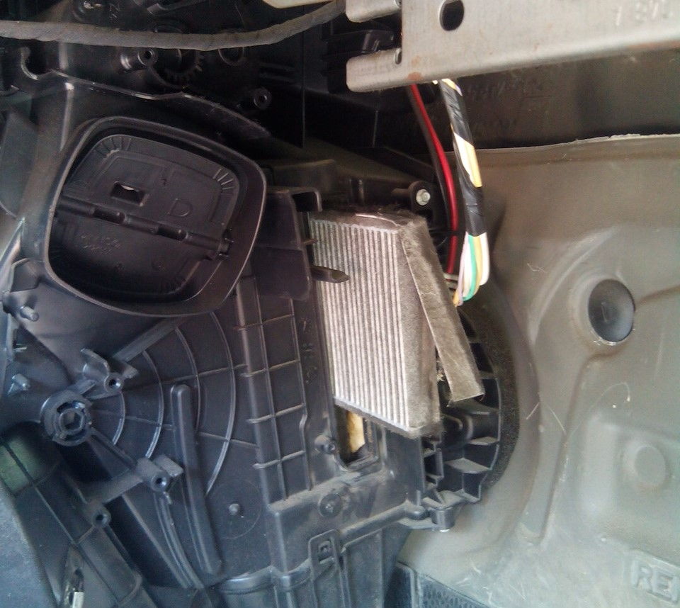 Важно отметить, что фильтр должен быть плотно зафиксирован, иначе он может выпасть из посадочного отверстия, и попадет не вентилятор отопителя. В итоге моторчик отопителя может выйти из строя