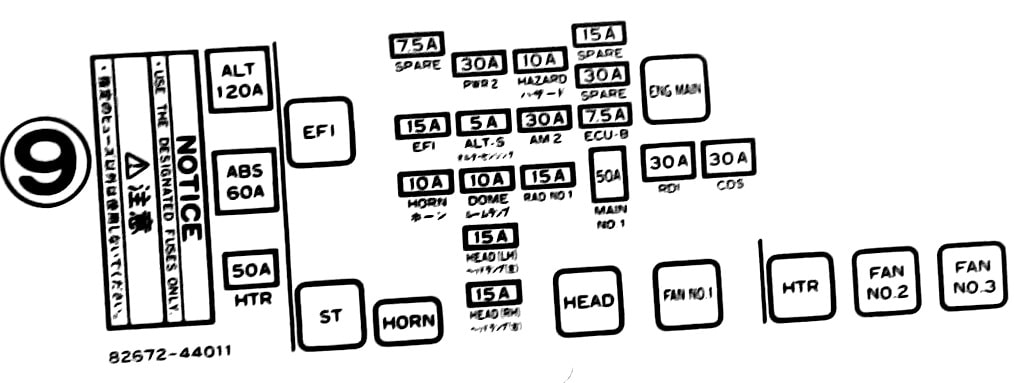 | 9 | HEAD (RH) Передние фары (правая) | 15 A |