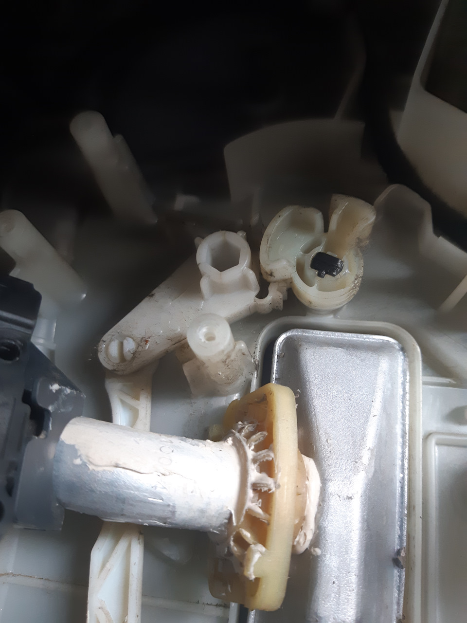 - пробуем провернуть электромотор за крыльчатку (не стоит прикладывать большого усилия во избежание поломки пластмассовой части);