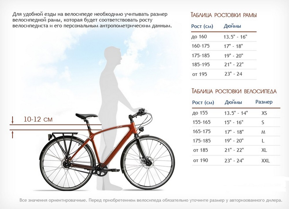 Но, как правило, все проще. В характеристиках пишут рост и вес человека, на который рассчитан сам двухколесный транспорт. Если же вы не читали характеристики, то просто встаньте рядом – рама должна быть между ног, седло – ниже ягодиц, причем между рамой и пахом расстояние должно быть в десять сантиметров. Совпало? Тогда велосипед по росту подходит.
